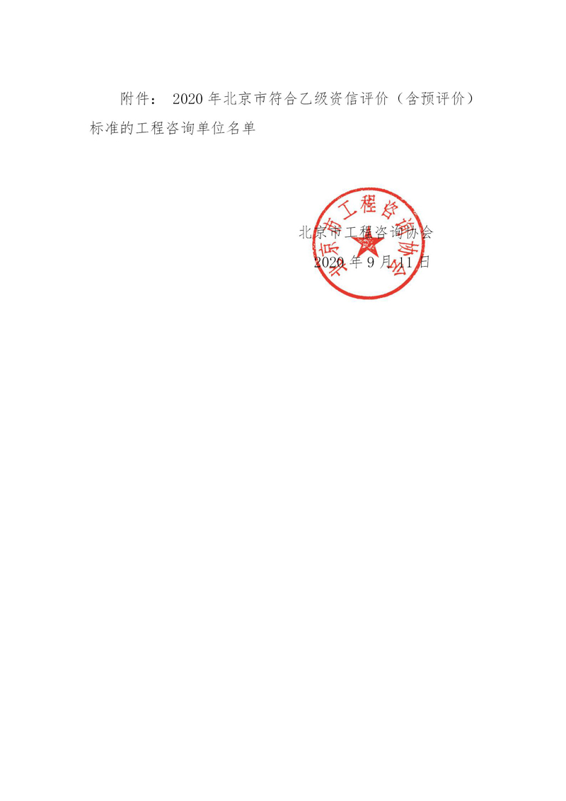 附件:2020年北京市符合乙级资信评价(含预评价)标准的工程咨询单位名单